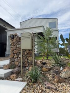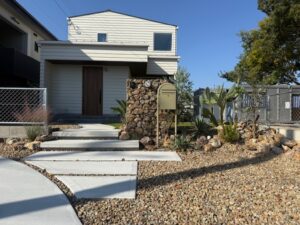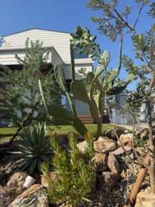 サボテンやアガベなどの個性的なフォルムが石材との相性を引き立てリズム感のある景観を生み出しています
