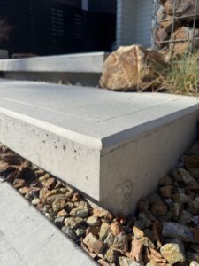 アプローチには、シャープなラインが印象的なコンクリートステップを採用