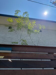 直線的な建物に合わせ外構も無駄を削ぎ落としたミニマルデザインに